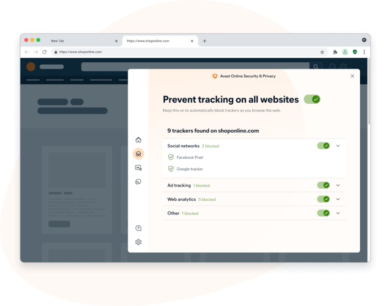 زِد خصوصيتك عبر الإنترنت عبر حظر المتعقبين عبر الإنترنت والتحكم في من يمكنه مراقبة نشاطك عبر الإنترنت. عزز أمانك عبر الإنترنت في مواجهة مواقع الويب الضارة وتصيد المعلومات.